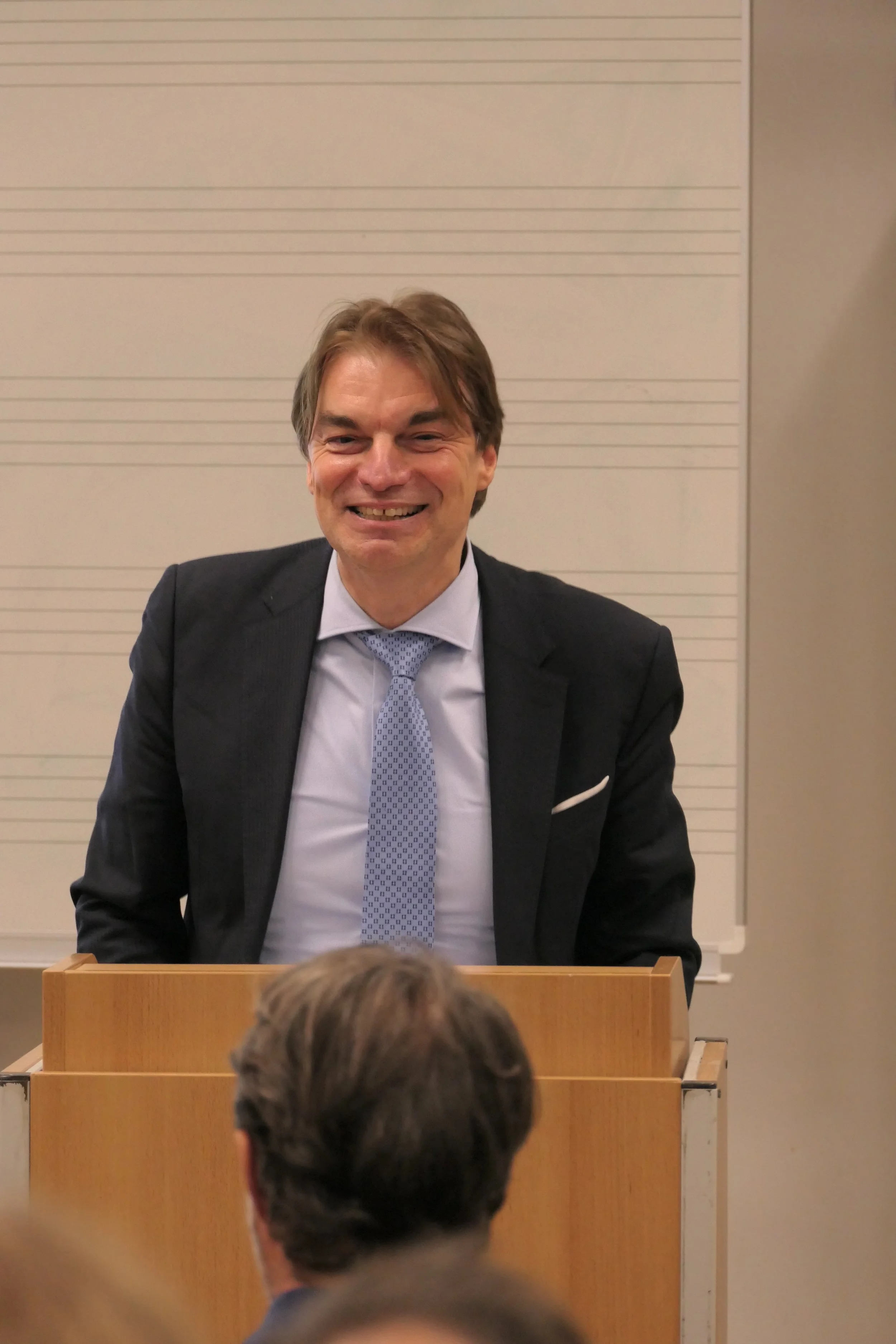Dank des Jubilars: Professor Maier führte in einer bewegenden Rede die Zuhörer zurück zu einem ihn, den damals Neunjährigen, zutiefst prägenden Erlebnis aus den letzten Tagen des Zweiten Weltkriegs, der Beobachtung eines der Todesmärsche von KZ-Häftlingen durch seinen Heimatort; davon ausgehend stellte der Jubilar das Humanum, die Suche nach Menschlichkeit, in das Zentrum seines lebenslangen Wirkens, seines Studiums der Humanistischen Sprachen. Als besonderen Dank widmete er der Stiftung sein jüngstes Buch, provokant betitelt mit „Das Ende der Antike. Aus Fernsicht“; darin setzt er sich mit eben dieser Titelthese auseinander, beruhigt jedoch in einem Gang durch die Jahrhunderte: Der Antike gelingt die stetige Erneuerung, eine stetige Renaissance – auch in der drängenden Zeit der technikbestimmten Moderne. Dieser Hoffnung verlieh der Jubilar in Vortrag und Werk eindringlich nachhallenden Ausdruck.